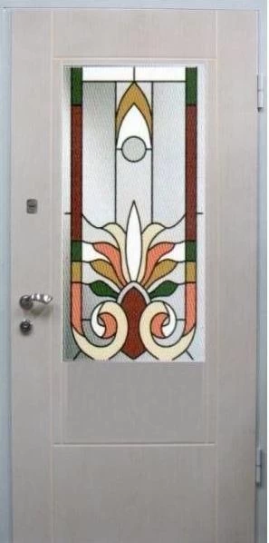 Прочная металлическая Дверь с витражами DZ634 по цене от 65 000 руб. под заказ в любой комплектации. Вы можете выбрать материал, замки, цилиндры и многое другое. Производим сами! Быстрая доставка и установка в Гвардейске.
