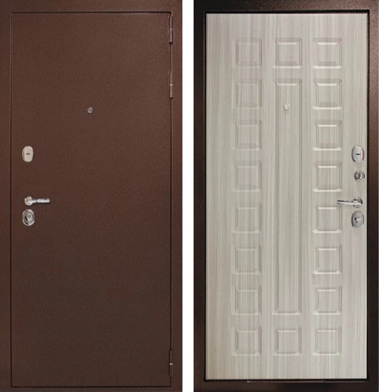 Надежная входная Дверь Рубикон 1 Медь Сандал белый премиум класса по цене 34 137 руб. Большая толщина стали защитит от проникновения в ваш дом, квартиру или коттедж. Используется очень качественная фурнитура: замки, цилиндры, ручки, защелки. Покрытие и отделка двери изготовлено под внимательным контролем производителя. Дверь имеет долгий срок службы и гарантию.