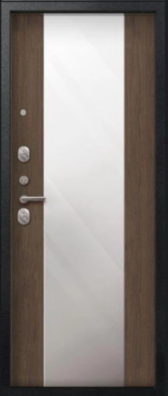 Надежная входная Дверь V-04 Черный муар - Миндаль Зеркало премиум класса по цене 44 887 руб. Большая толщина стали защитит от проникновения в ваш дом, квартиру или коттедж. Используется очень качественная фурнитура: замки, цилиндры, ручки, защелки. Покрытие и отделка двери изготовлено под внимательным контролем производителя. Дверь имеет долгий срок службы и гарантию.